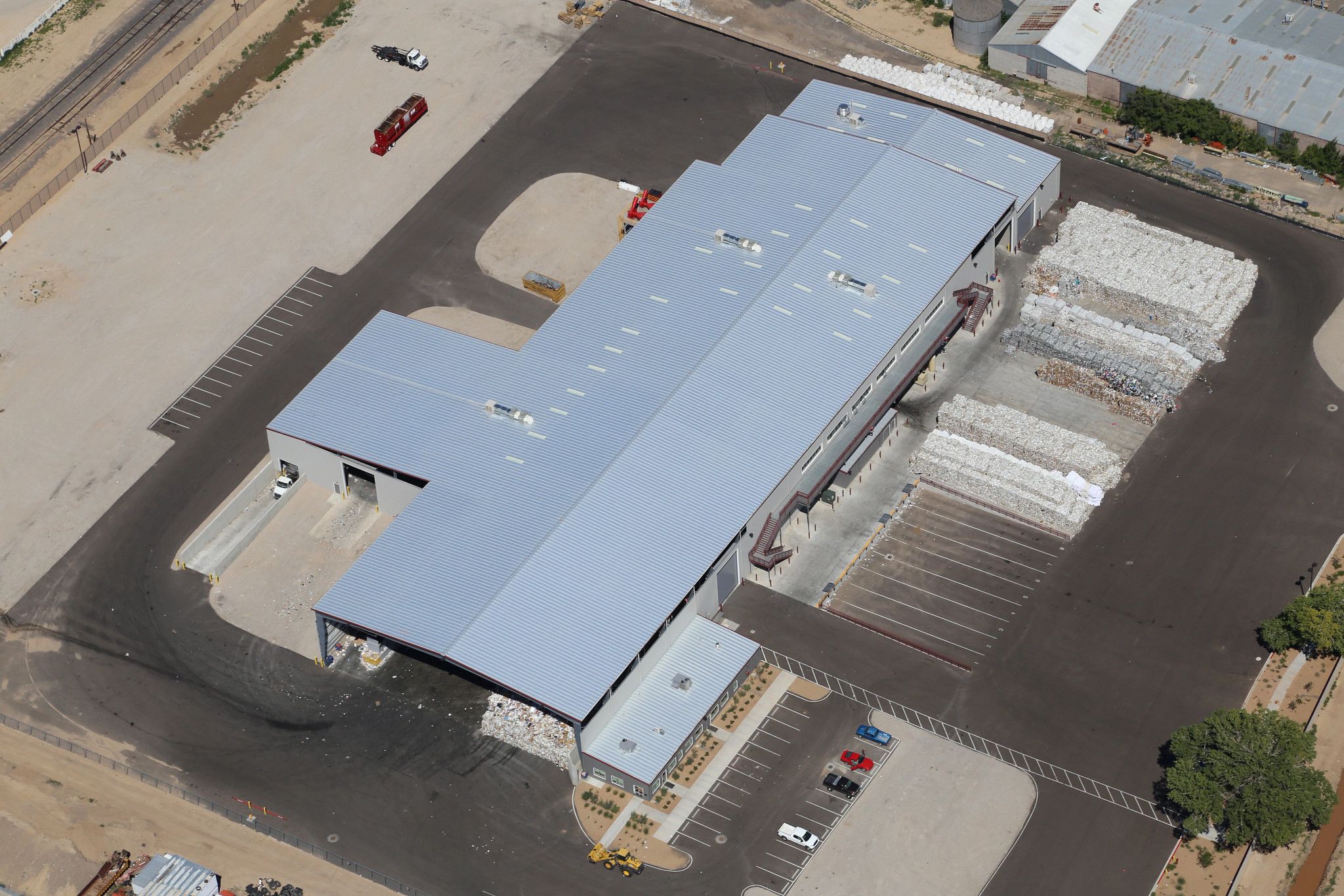 这座钢结构回收处理中心的主要功能是容纳和保护回收设备。该建筑包括一个前厅倾斜。有许多用于将设备连接到建筑物的点载荷。该建筑还有一个广泛的灭火系统和一个高架的外部观察平台。